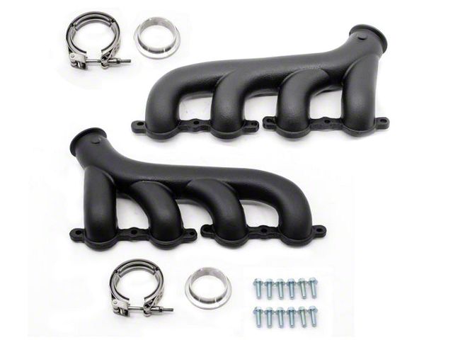 Cast iron exhaust manifolds v band driver passenger 02-12 Chevy LS based kit - black