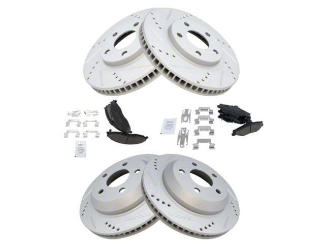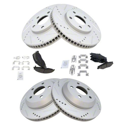 Performance. This brake kit significantly improves braking efficiency, delivering strong stopping power while reducing noise and dust output. The cross-drilled and slotted rotors enhance cooling, helping to maintain consistent performance during repeated braking. Combined with the ceramic pads, the system offers smoother engagement and increased fade resistance compared to stock components.