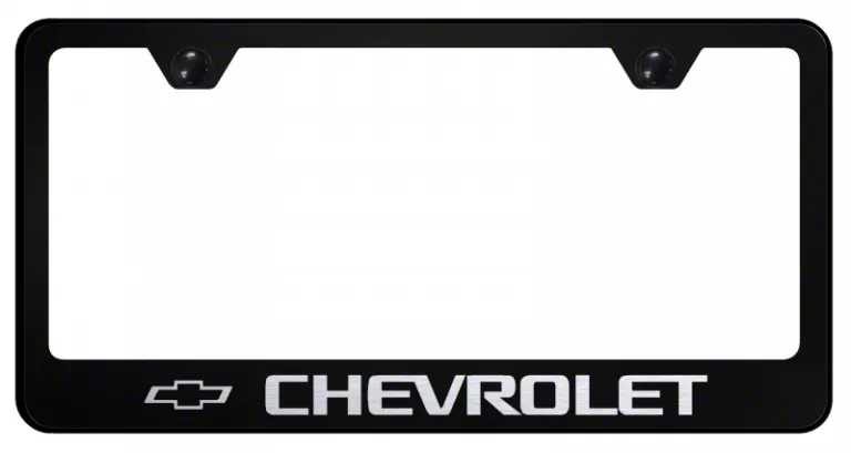 Universal Sleekness. The Chevrolet License Plate Frame in black finish is a stylish and functional accessory that's perfect for any Chevrolet vehicle. This license plate frame is designed for universal use, making it compatible with any standard license plate. Its sleek, black finish adds a touch of sophistication to your vehicle's appearance, while also protecting your license plate from dirt, debris, and other road hazards.