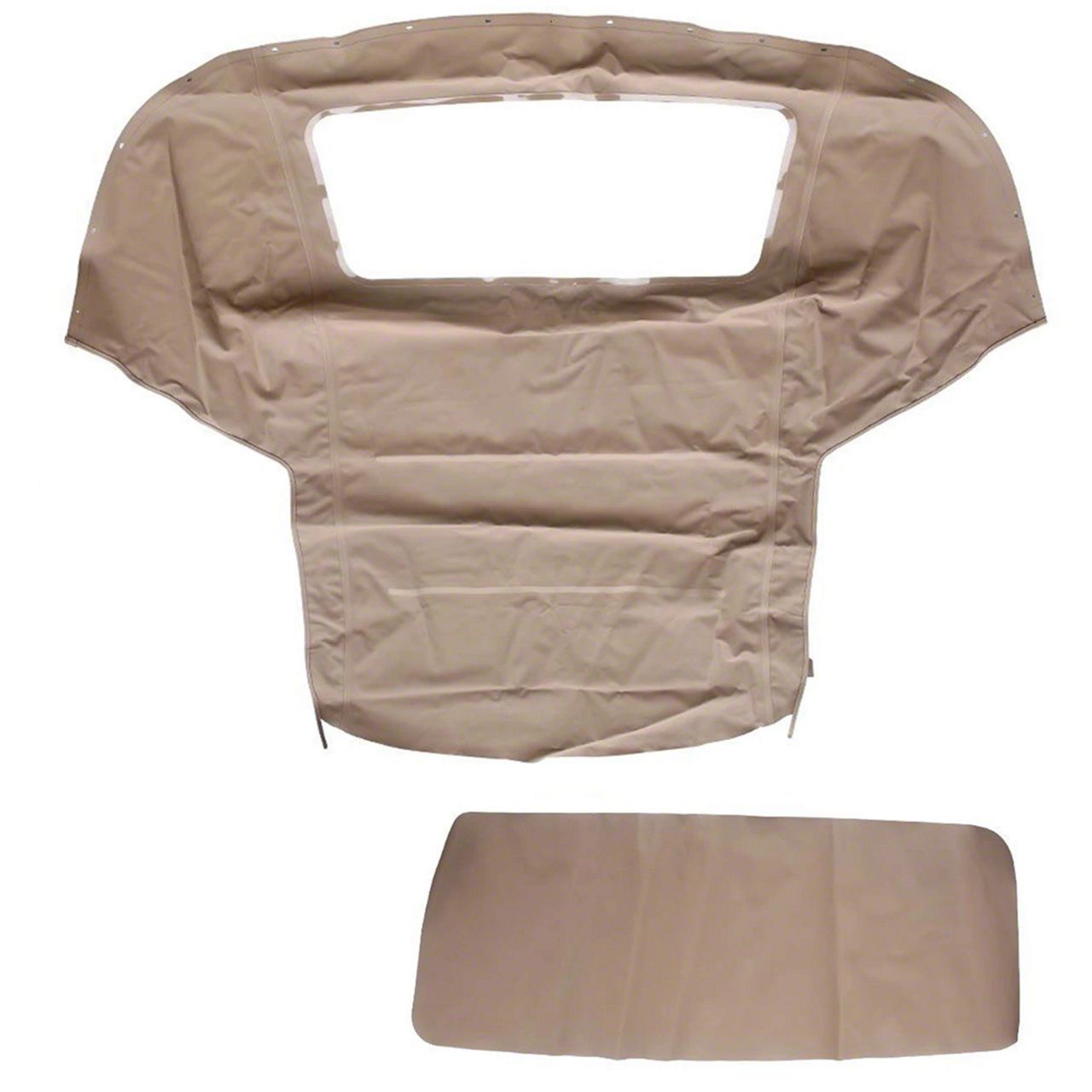 Construction and Appearance. Manufactured using high-quality plastic materials, this convertible top offers durability and long-lasting performance. The tan color complements the vehicle’s aesthetics, while the clear plastic window provides visibility and a factory-style look. Its sturdy construction ensures resistance to wear and tear over time.