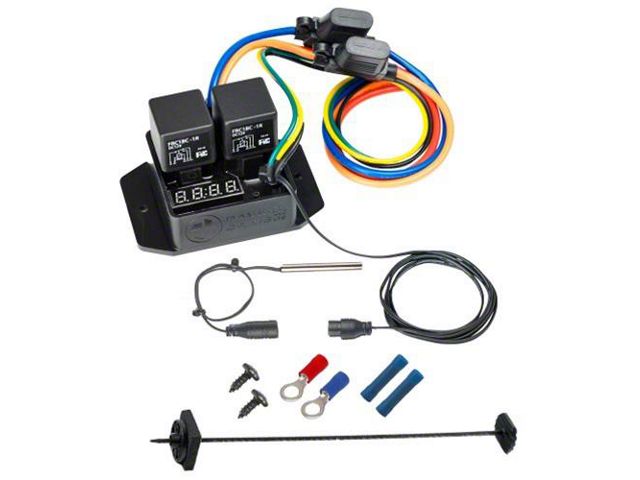 Essential Cooling Control. The Digital Thermatic Fan Switch is a crucial tool for managing engine temperatures in performance vehicles. It operates up to two fans and is compatible with Thermatic Electric Fans, EWPs, and similar models. By sensing air temperature as it flows through, it enables precise control over cooling, adjustable between 104 to 230 degrees Fahrenheit.
