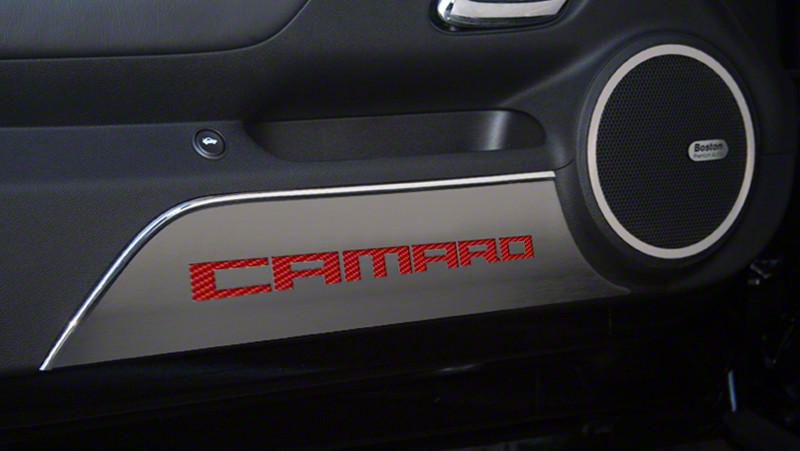 Application. This set of Door Panel Kick Plates with Camaro Logo is designed to fit all 2010 to 2015 Chevrolet Camaro models.