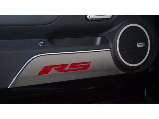 Application. This set of Door Panel Kick Plates with RS Logo is designed to fit all 2010 to 2015 Chevrolet Camaro models.