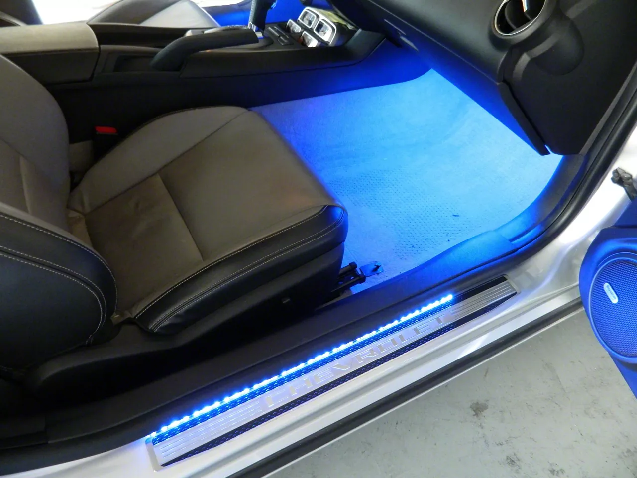 Dramatic Entrance Enhancement. The Door Sill LED Lighting Kit for your Chevrolet Camaro transforms your vehicle's entryway into a visually striking experience. This kit is designed to create a theatrical door effect, with each strip housing 36 LEDs that automatically illuminate when the doors open, enhancing visibility and adding a stylish flair to your car's interior.