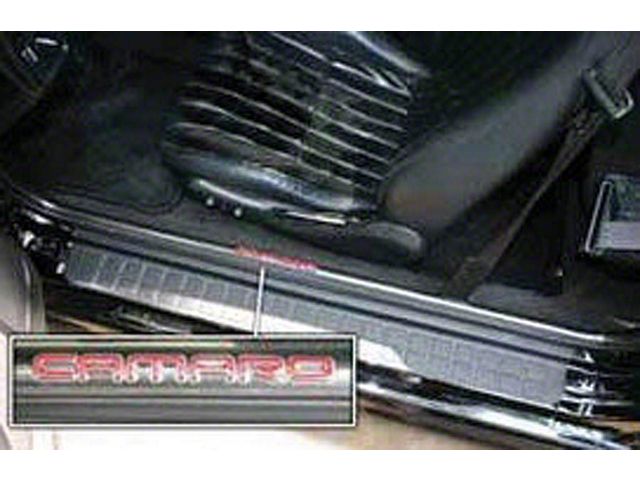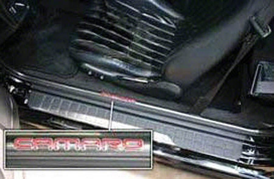 Application. This Door Sill Plate Covers with Camaro Logo; Black fits 1993-2002 Camaro Coupe models.