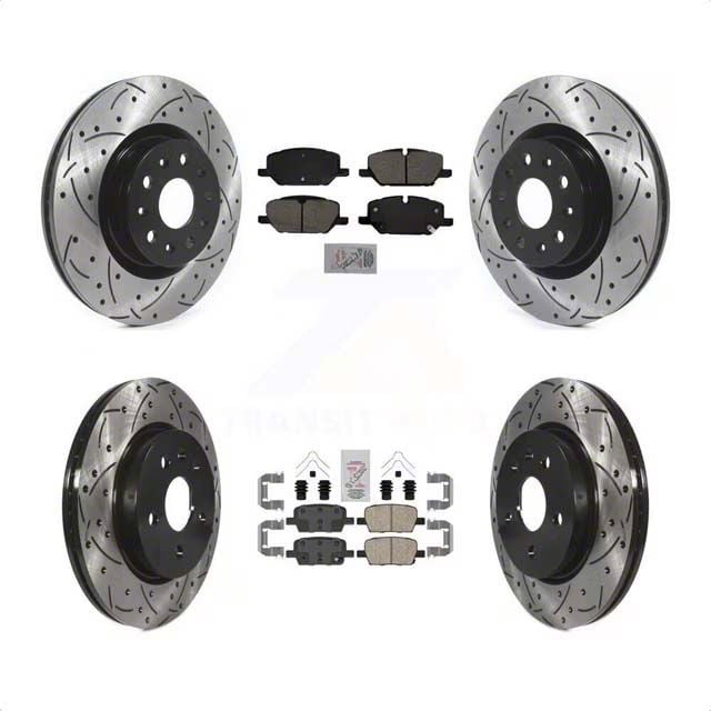 Drilled and Slotted Brake Rotor and Ceramic Pad Kit; Front and Rear (22-24 2.0L Camaro LT w/ 4-Piston Front Calipers)Find parts that fit my vehicle