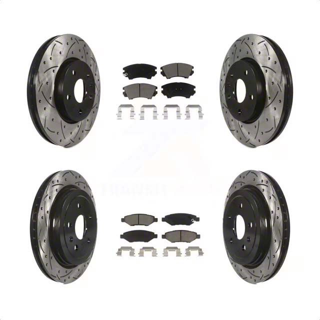 Improve Safety and Reliability. The Drilled and Slotted Brake Rotor and Ceramic Pad Kit is designed to offer enhanced braking performance for both front and rear positions. This kit provides superior stopping power, making it a perfect choice for drivers looking for improved safety and reliability in their vehicles.