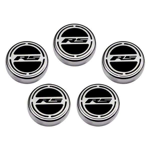 Stylish Engine Caps. The Engine Caps with RS Logo are designed to cover your factory fluid caps, covering oil, water, brake, power steering, and windshield washer caps. This set adds a touch of style to your engine bay, making it stand out.
