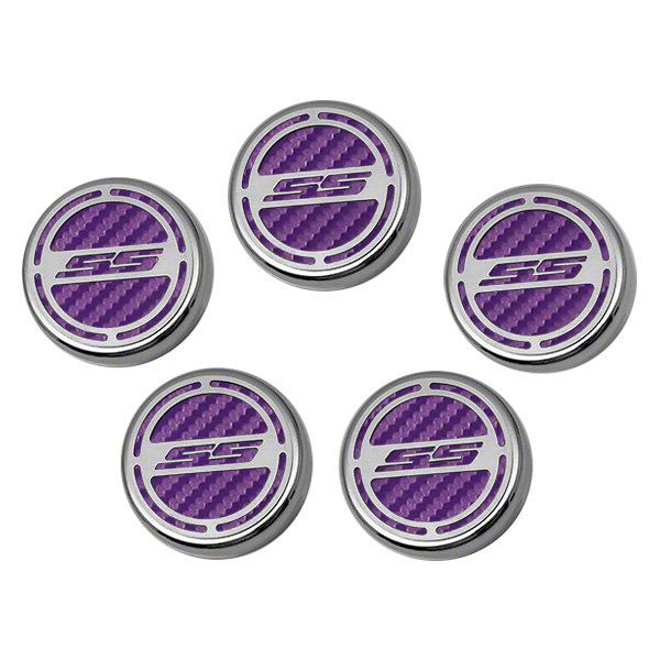 Performance Dress-Up Detailing. The Engine Caps with SS Logo are a stylish and functional enhancement designed specifically for 2010-2015 Chevrolet Camaro SS models equipped with an automatic transmission. These caps not only add a bold aesthetic with their purple carbon fiber finish but also serve as a protective and performance-based upgrade for your engine bay components.