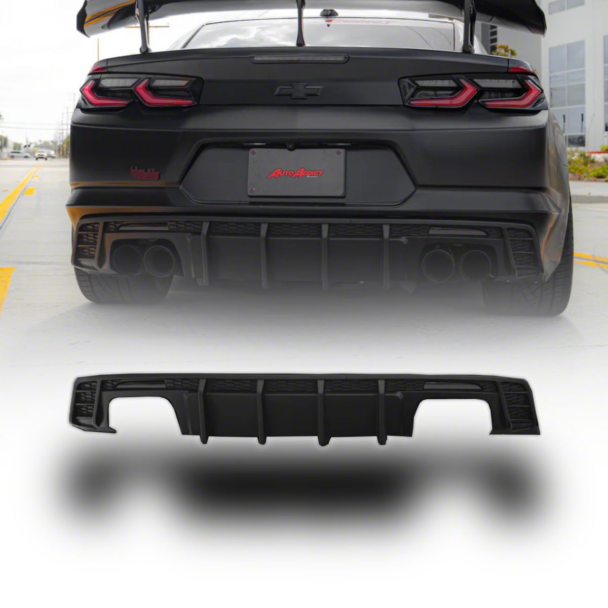 Application. This Shark Fins Diffuser fits 2016-2024 Chevrolet Camaro models. Excludes ZL1 models. It delivers both aerodynamic performance and an aggressive visual upgrade for enthusiasts looking to elevate their Camaro’s rear profile.