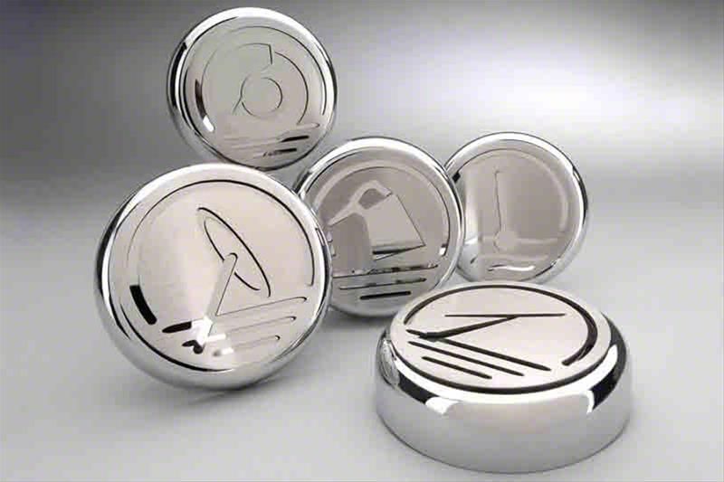 Distinctive Customization. The Executive Series Fluid Cap Covers offer a unique and stylish way to customize your vehicle. Featuring a striking design and integrated with a Polished and Brushed finished vinyl, these cap covers add a touch of elegance and personalization to your V6 Chevrolet Camaro.