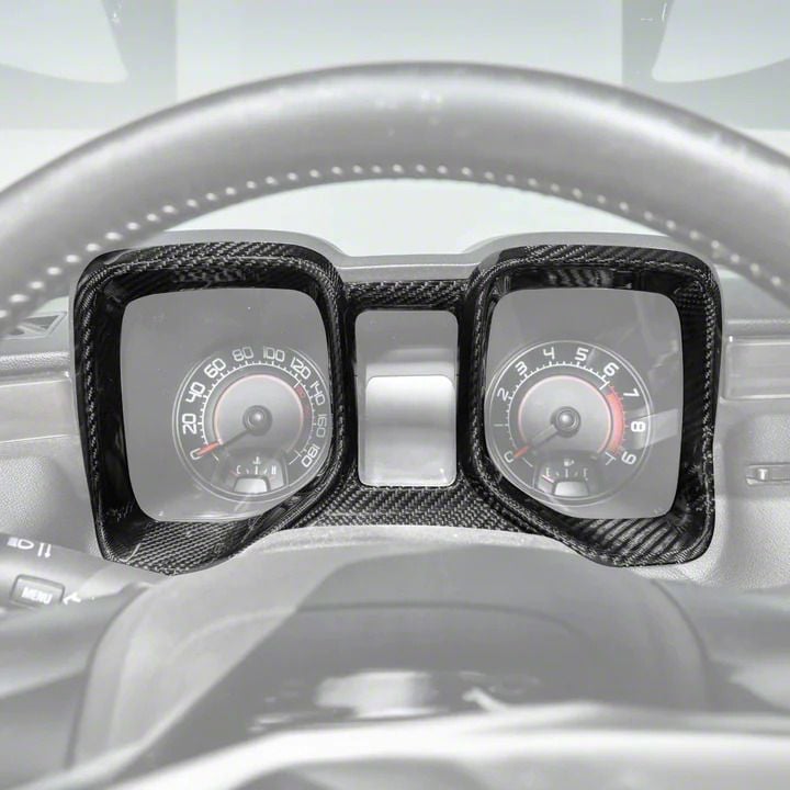 Construction and Appearance. Expertly crafted from high-quality pre-pregnated carbon fiber, this trim cover combines strength and lightweight performance. Its glossy black carbon fiber finish delivers a premium, motorsport-inspired look that enhances the visual appeal of the cockpit area.
