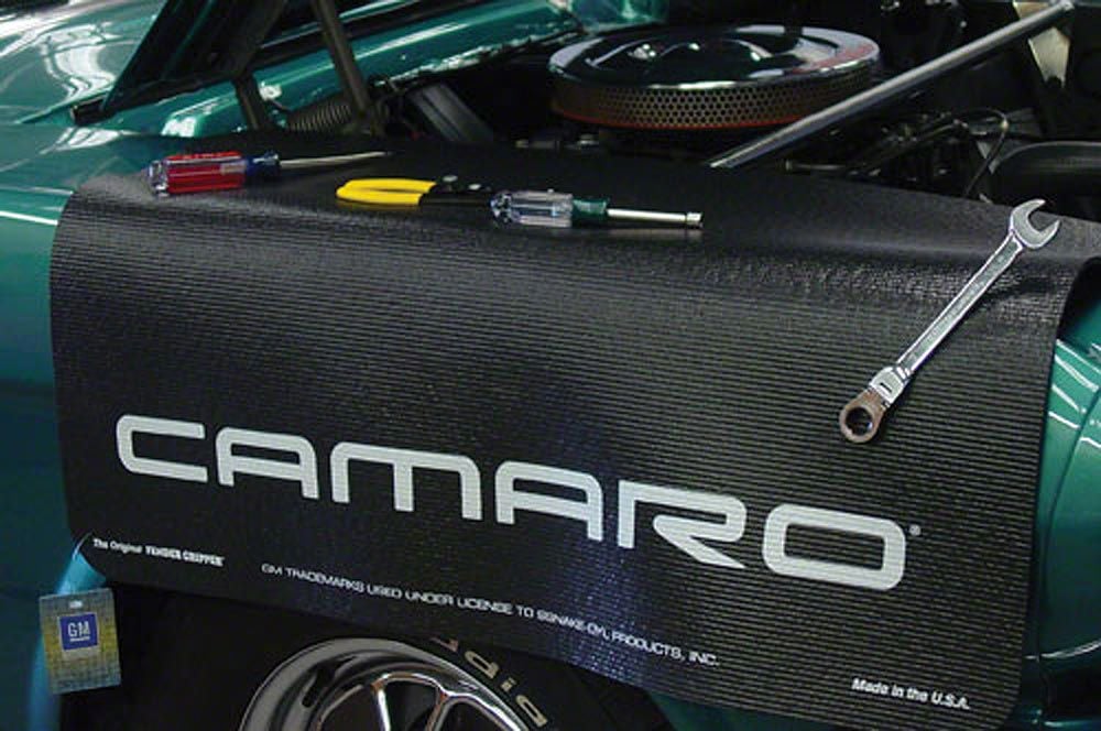Non-Slip Backing. Protect your vehicle's fenders while showcasing your love for the Camaro with the Fender Cover with Camaro Logo. This fender cover is constructed with a non-slip front, ensuring that your tools and parts stay securely in place while you work on your vehicle. The cushioning non-slip backing provides added protection against scratches and dings.