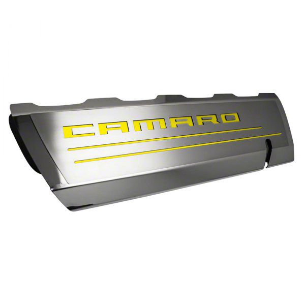 Custom Engine Dress-Up. These Fuel Rail Cover Overlays with Camaro Cutout are a premium styling upgrade for your engine bay. Designed to enhance the look of your Camaro SS, they add a bold visual accent with the integrated Camaro script cutout and yellow vinyl background. This upgrade offers an instant custom touch without compromising OEM aesthetics.