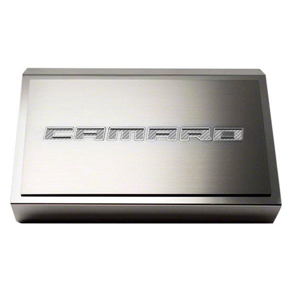 Application. This Fuse Box Cover with Brushed Camaro Top Plate (White Carbon Fiber) fits 2016-2024 Chevrolet Camaro models.