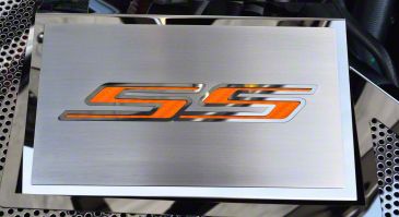 Stylish Engine Bay Upgrade. The Fuse Box Cover with Brushed SS Top Plate offers a sleek and stylish enhancement for your Camaro SS. Featuring an orange carbon fiber inlay, this cover adds a distinctive look to your vehicle, combining durability with aesthetic appeal.