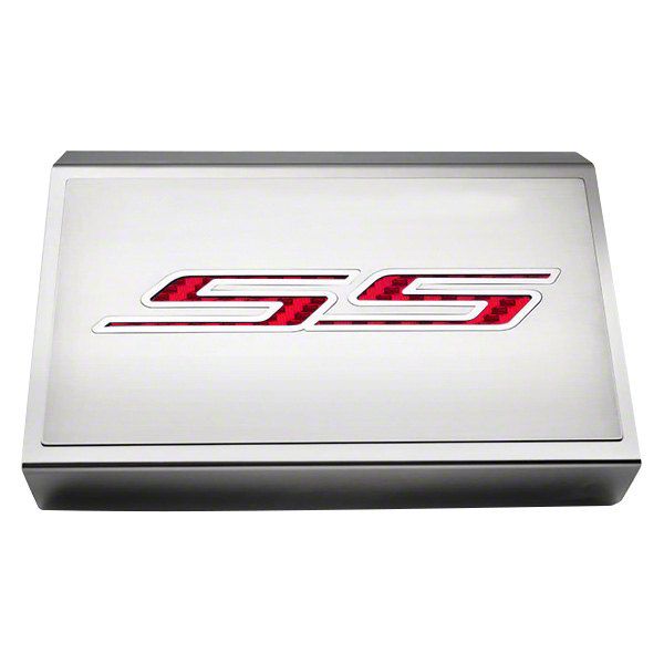 Show-Ready Engine Bay. Complete the high-end look of your Camaro’s engine bay by covering its fuse box with the Fuse Box Cover with Brushed SS Top Plate; Red. This cover prominently displays your engine’s SS logo in red. If your Camaro’s headed to a car show, this fuse box cover is a must-have. This is especially true if you’ve already covered the rest of your engine bay components with the matching set.