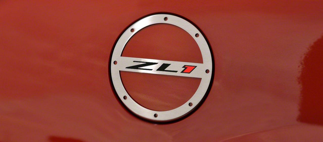 Stylish Fuel Door Upgrade. The Gas Cap Cover; Polished; ZL1 Style enhances the exterior appearance of your Camaro by replacing the stock fuel door trim with a distinctive stainless steel cover. It adds a bold and refined look that elevates the muscle car aesthetic while protecting the original fuel door. This accessory is ideal for enthusiasts seeking a custom touch with easy installation.