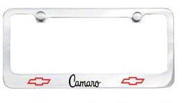 License Plate Frame with Script Camaro Logo; Chrome (Universal; Some Adaptation May Be Required)