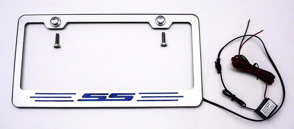 Construction and Appearance. Crafted in the USA, this license plate frame is built from premium-grade stainless steel, ensuring resistance to rust, tarnish, and fading. It sports a brushed finish for a sophisticated touch, and the iconic “SS” lettering is highlighted with a durable vinyl inlay for added contrast and style.