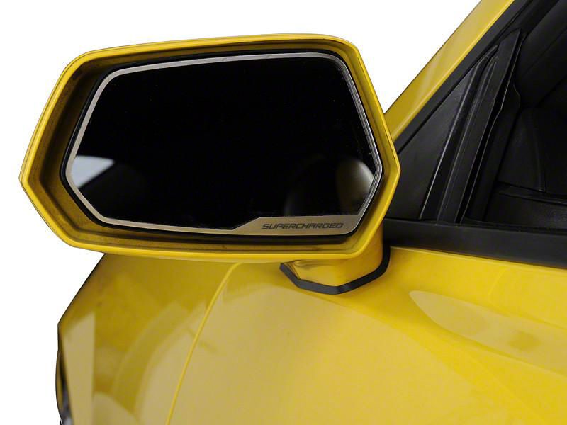 Supercharge Your Side Mirrors. Why pay for the expensive cost of replacing your side mirrors, when you can achieve a stylish upgrade with a new set of trim? With the Camaro Mirror Trim, you can transform your side mirrors with a sleek and racing-style trim, featuring a Supercharged logo and satin-brushed finish. In addition, this product is affordable, and installation is easy, making upgrades to your Camaro’s side mirrors effortlessly.