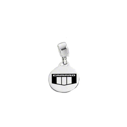 This Camaro dangle charm comes with plain base and black marked emblem. The charm base is large enough to go over the screw-type bracelets and fits Pandora, Chamilia, Biagi, Pugster, Troll and other bracelets. Sterling silver base /Stainless steel disc.
