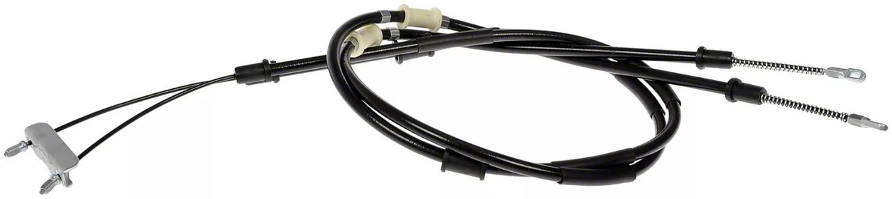 Durable and Quality Guaranteed. This parking brake cable is encased in a jacket made of durable rubber material, and its casings are flexible and conduit-covered to prevent corrosion of interior cables. The inner cables are lubricated and sheathed for long service life; while the fittings and clips are zinc-plated to prevent rusting.