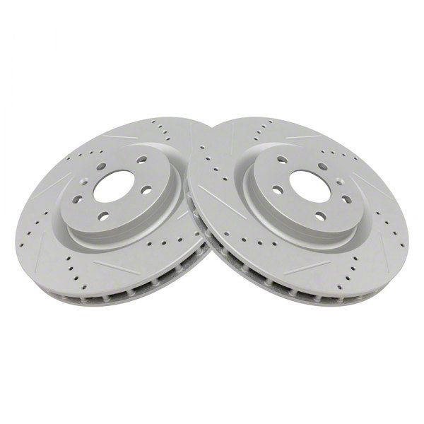 Five Lug Holes. Enhance your Camaro SS's braking performance with our Performance Drilled and Slotted Rotors. This set includes rotors for both the front and rear positions, ensuring consistent and reliable braking power. Featuring five lug holes and a vented rotor type, these drilled and slotted rotors efficiently dissipate heat, reducing the risk of brake fade and improving overall braking performance.