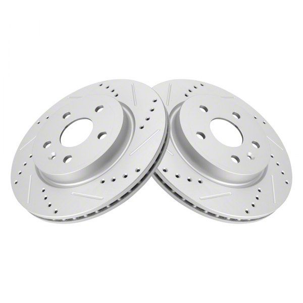 Upgraded Braking Performance. The Performance Drilled and Slotted Rotors are designed to enhance braking efficiency by reducing heat buildup and minimizing brake fade. The precision-drilled holes allow for improved airflow and heat dissipation, while the slotted design helps maintain a clean contact surface for the brake pads, ensuring consistent stopping power under various driving conditions.