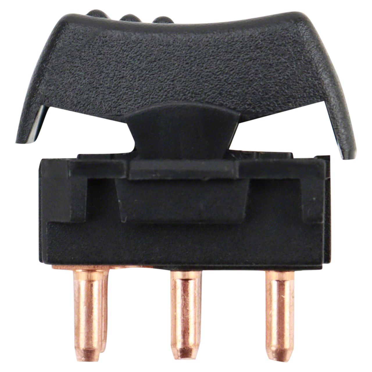Construction and Appearance. The switch is engineered using high-quality electrical components and durable plastic materials with a textured black finish, ensuring longevity and aesthetic consistency within the vehicle interior.