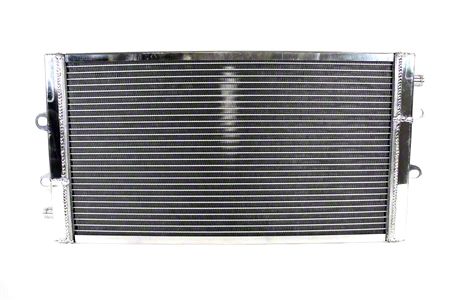 Construction and Appearance. Constructed from non-epoxied, furnace-brazed cores and an all-aluminum body, this heat exchanger is built for durability and efficiency. The CNC precision-machining and welding contribute to its high-quality finish and robust structure, which is complemented by a high-density fin core for superior heat dissipation.