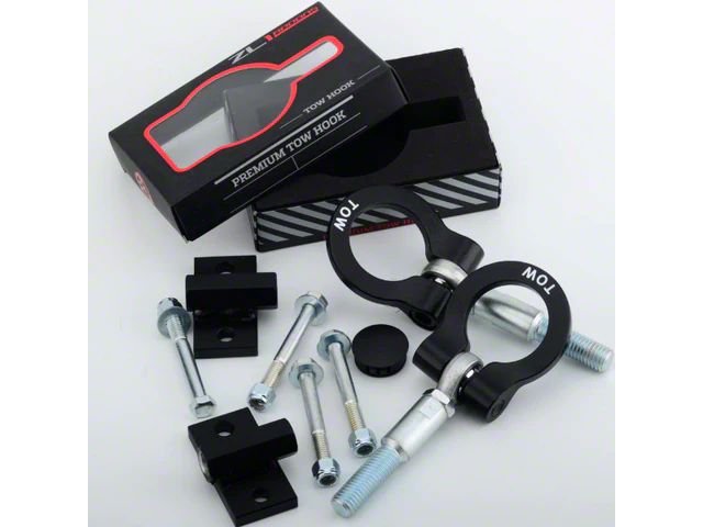 Heavy-Duty Tow Hook. This Premium Tow Hook with One Black D-Ring is designed for front and rear applications, offering both functionality and style. It meets the SCSA 2-inch requirement, making it ideal for track and performance use. The tow hook provides a secure and strong towing point, ensuring safety and convenience for your Chevrolet Camaro SS.