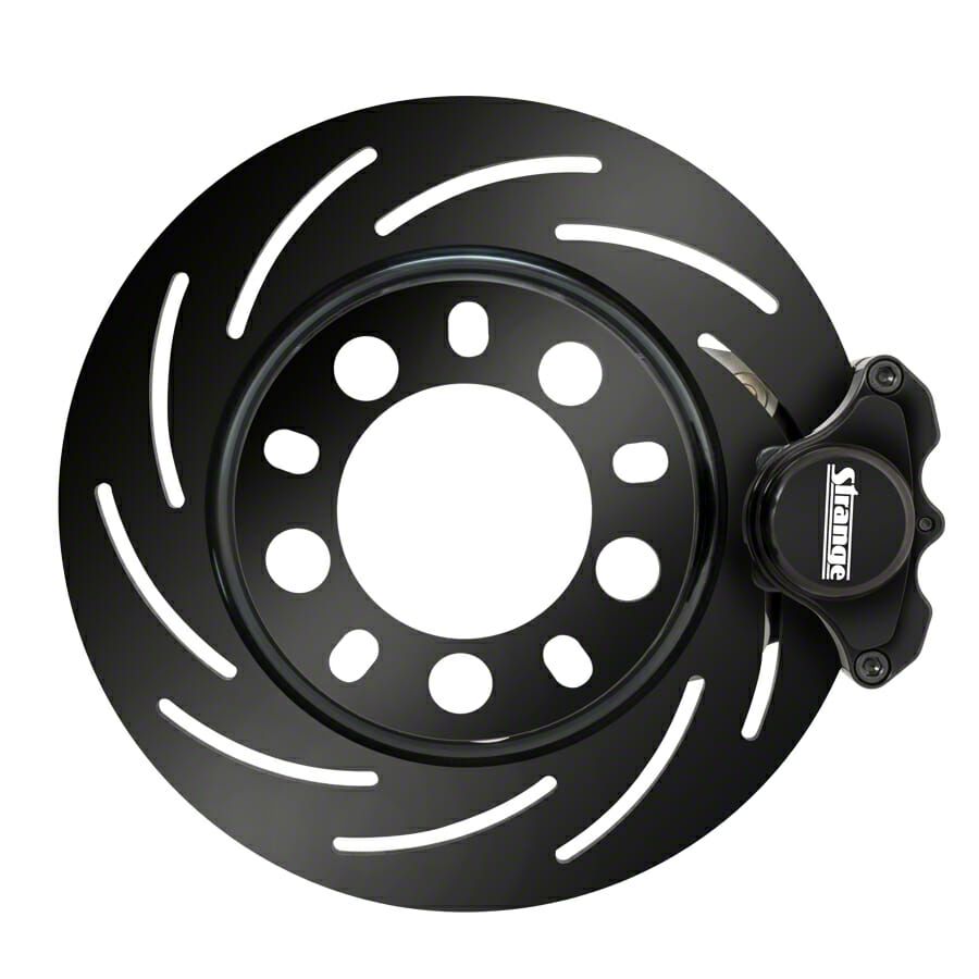 High Performance Brake Kit. The Pro Series M/D 2-Piston Front Brake Kit with Slotted Rotors; Black Calipers is engineered for drag racing applications, providing superior stopping power and reliability. This kit improves braking efficiency by utilizing advanced rotor design and piston technology to deliver consistent performance under extreme conditions.