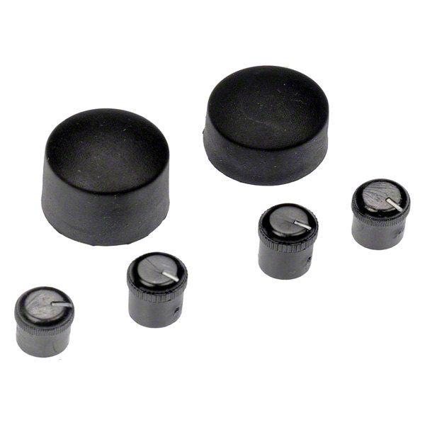 HELP™ Radio Knob Assortment (76849) by Dorman®. Finish: Black. Material: Plastic. 6 Pieces. Package Type: Card. Dorman offers a variety of Radio Knobs that are manufactured to either match the original or to blend in with the overall aesthetic design of your vehicle’s interior. Choose an assortment that contains the tuner knob, treble/bass/balance/fade knob, and volume knob for a complete repair for one radio.