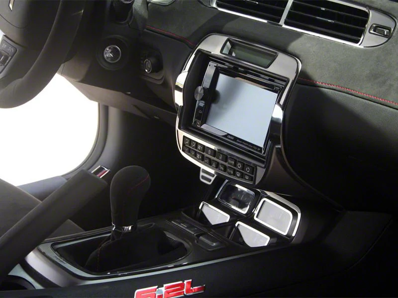 Application. This Radio Trim Plate in Satin/Polished Finish, for Aftermarket Radio, fits all 2010 to 2015 Chevrolet Camaro models.