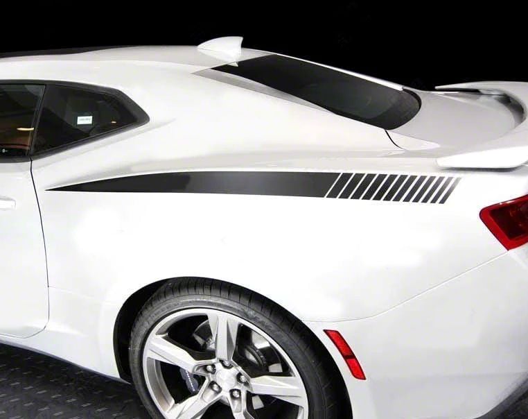 Rear Quarter Side Accent Decal Stripes; Matte Black (14-15 Camaro)Find parts that fit my vehicle