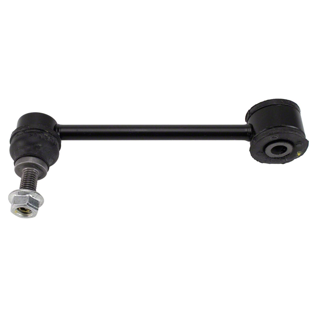 Construction and Appearance. Manufactured with durable materials, this sway bar link features a male threaded end and a bushing end for secure attachment. It includes a dust boot to protect the joint from contaminants. The component is new and engineered to meet or exceed OEM specifications, ensuring long-lasting performance.