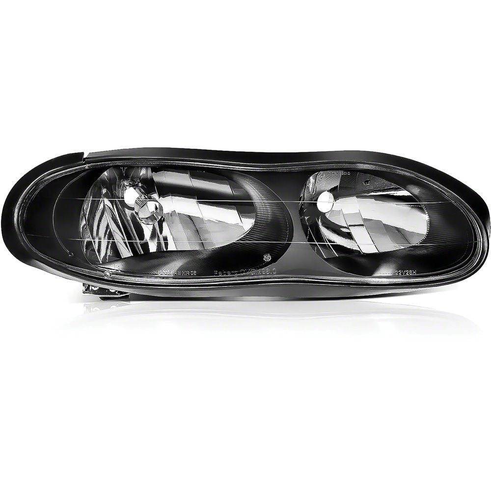 Replacement Headlight Assembly. The Replacement Halogen Headlight; Black Housing; Clear Lens; Passenger Side is engineered as a direct replacement for the original headlamp assembly on the 1998 to 2002 Camaro. It provides proper lighting performance essential for safety and visibility, specifically crafted to ensure compatibility and maintain the vehicle's factory appearance.
