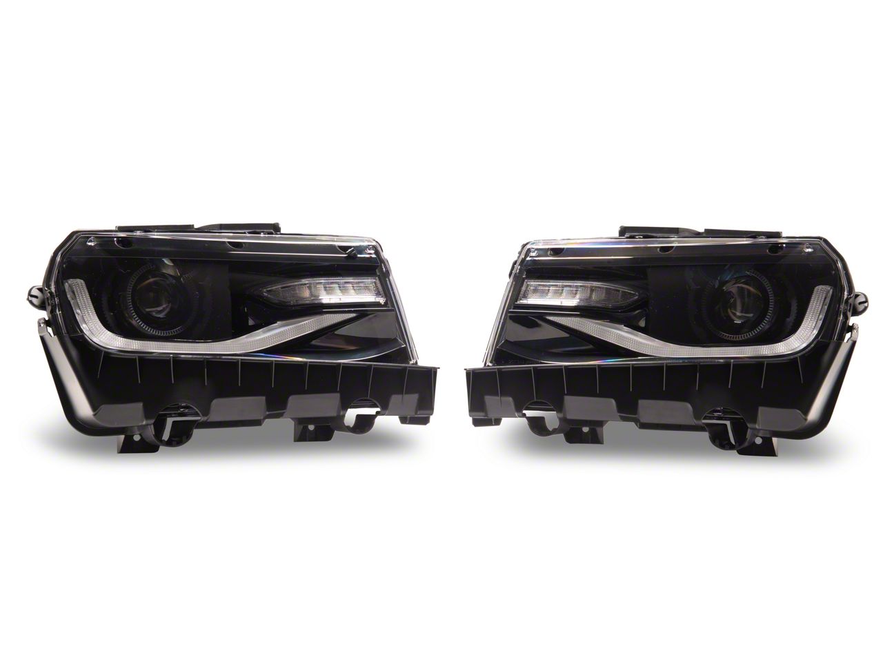 Sexy, Stealthy Look. If you're looking for the perfect headlight upgrade for your 2014-2015 Chevrolet Camaro, then you need to check out these RGB Dual Beam Projector Headlights. These badass headlights are DOT certified and feature black housing with a smoked lens for that sexy, stealthy look. Plus, they're Bluetooth controlled, so, you can easily customize your light settings to match your mood or personal style. And with a direct fit and function, they're easy to install with no modification required. Just plug and play.