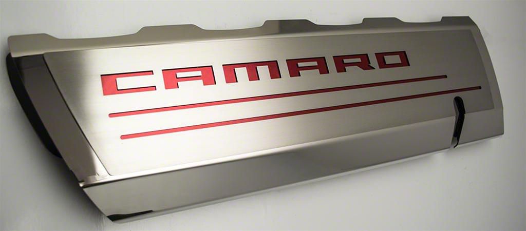 Dress Up Your Camaro’s Engine Bay. Looking for an easy-to-install yet highly stylish addition to your Camaro’s engine bay? These Fuel Rail Covers with Brushed Camaro Logo Top Plate are an excellent addition to any engine bay, adhering to the factory engine cover and masking the fuel rails and ignition coils with sleek, premium stainless-steel plates.