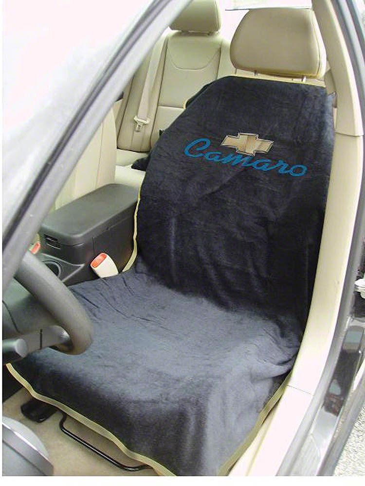 Application. This Seat Towel with Camaro Logo (Black) fits universally and requires minimal adjustments.