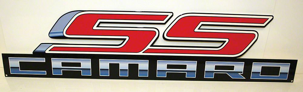 Stylish Metal Sign with SS Camaro Logo. Display your love for the Camaro with this stylish Metal Sign featuring the iconic SS Camaro logo. Designed using PhotoSTEEL technology, this sign combines durability and style, making it perfect for automotive enthusiasts. Its 14x4-inch size offers a sleek look, suitable for various settings.