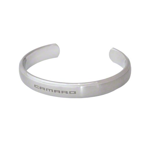 This Camaro stainless steel cuff sports the signature. The cuff is brushed with a polished ridge and is 1/2″ wide. This sporty cuff fits wrists up to 7-1/4″.
