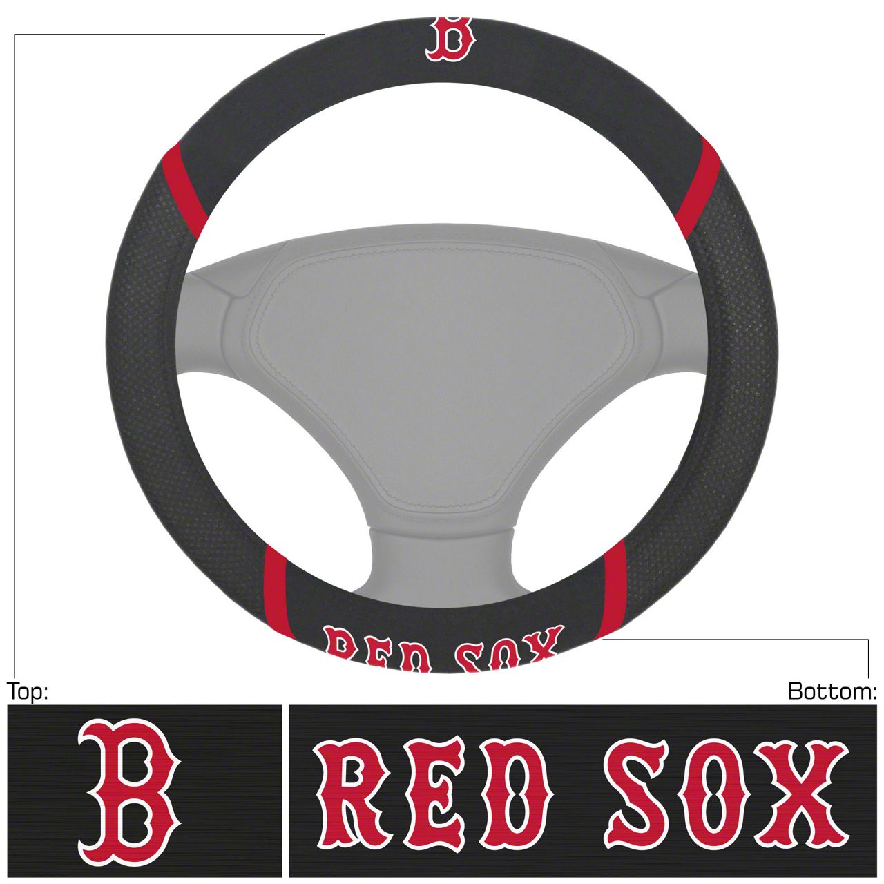 Steering Wheel Cover with Boston Red Sox B Cap Logo; Black (Universal; Some Adaptation May Be Required)