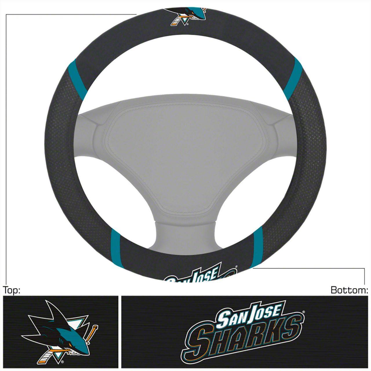 Steering Wheel Cover with San Jose Sharks Logo; Black (Universal; Some Adaptation May Be Required)