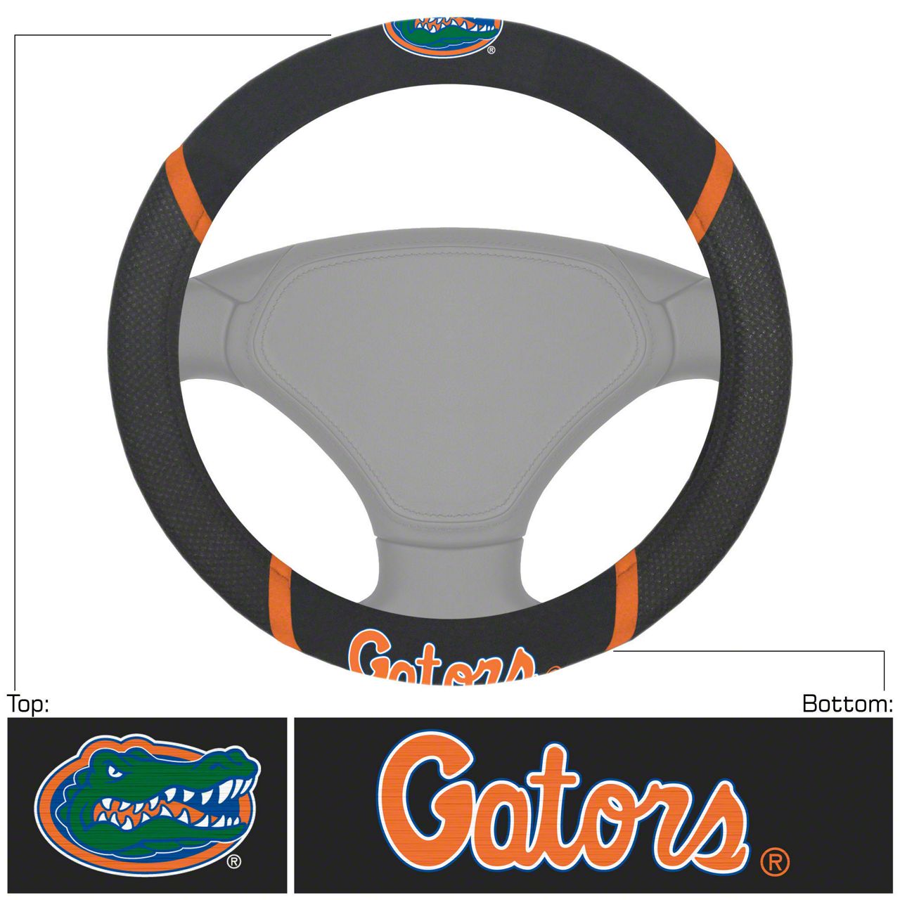 Steering Wheel Cover with University of Florida Logo; Black (Universal; Some Adaptation May Be Required)
