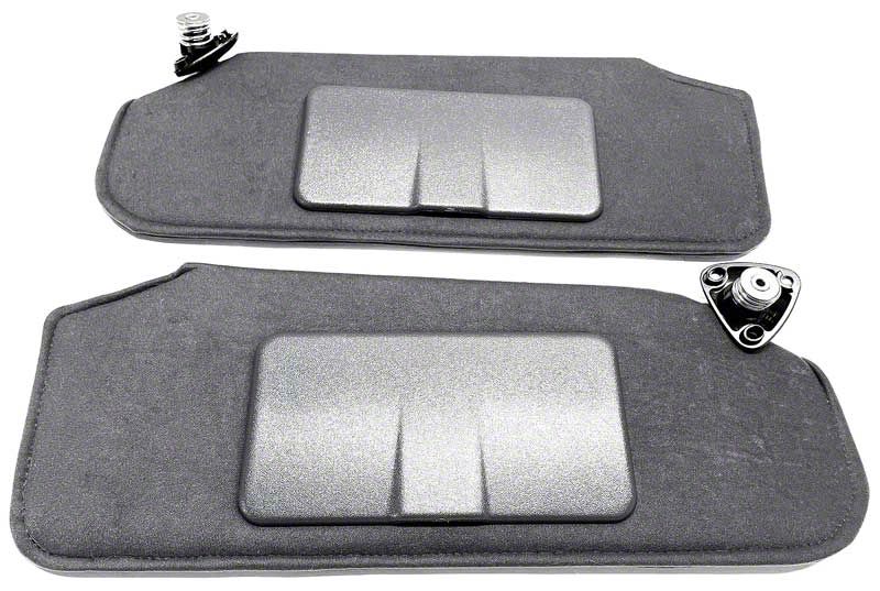 Construction and Appearance. Finished in a dark gray color, these sun visors match the original interior design while providing a clean, OE-style look. Built with materials that meet factory specifications, they include integrated vanity mirrors and faithfully reproduced warning labels to maintain authenticity. The construction supports long-term durability and a consistent fit.
