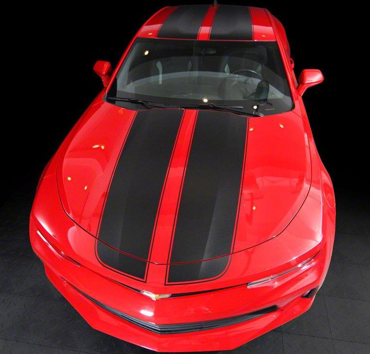 Sport Stripe Decal Kit. This kit includes everything you need to give your 2016-2018 Camaro a bold, sporty look. With pre-cut decals for the roof, hood, and rear, installation is straightforward and hassle-free. The matte black finish adds a sleek, aggressive style to your vehicle, making it stand out on the road.