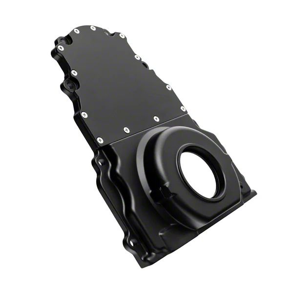Two-Piece Timing Cover without Cam Sensor Hole; Black (98-02 5.7L Camaro)Find parts that fit my vehicle