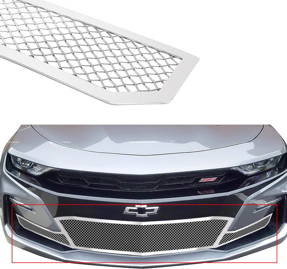 Front-End Protection and Style. The Wire Mesh Lower Grille; Chrome provides enhanced front-end protection and style for your 2014-2015 Camaro SS. This high-quality grille offers excellent protection against road debris while adding a sleek, stylish look to your vehicle. The chrome finish enhances the overall appearance, making it a perfect upgrade for Camaro enthusiasts.